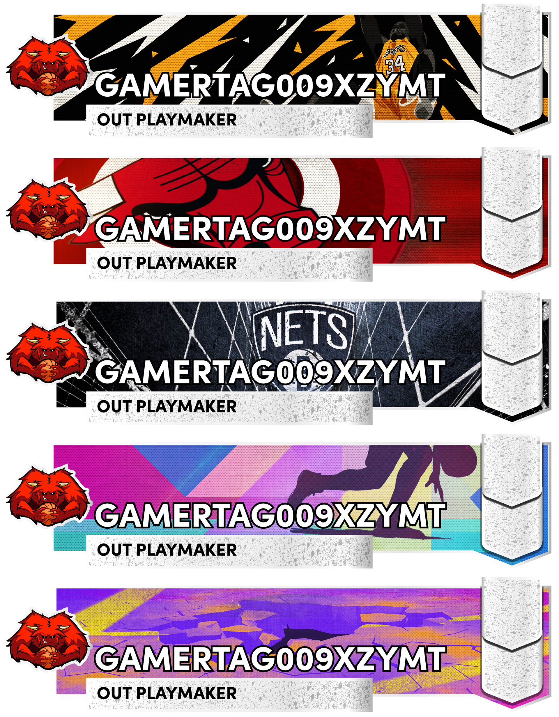 Frames I designed for NBA 2K22 gamer plates with the team at Jumbla. Some made it in-game, some didn't.